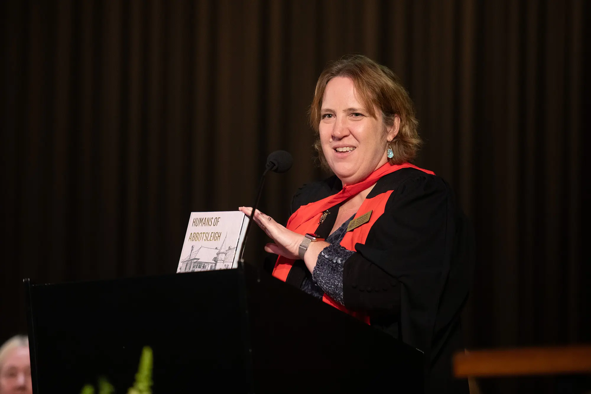 Former Deputy Headmistresses Mrs Robyn Claydon and Mrs Rosemary Abrahams shared their reflections, and special gifts were presented to the School. The assembly also marked the launch of Humans of Abbotsleigh, a wonderful new publication curated by Dr Alison Gates, celebrating the stories of students, staff and community members who have shaped the School across its 140 years.