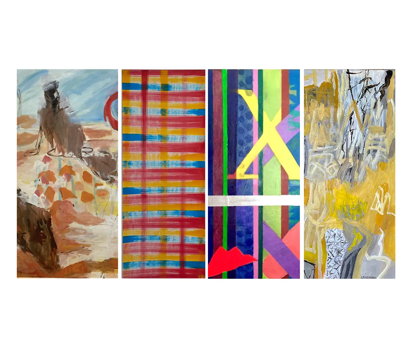 The works of the four artists reveal the dynamic possibilities of painting—where structure meets spontaneity and material becomes a vessel for experience.