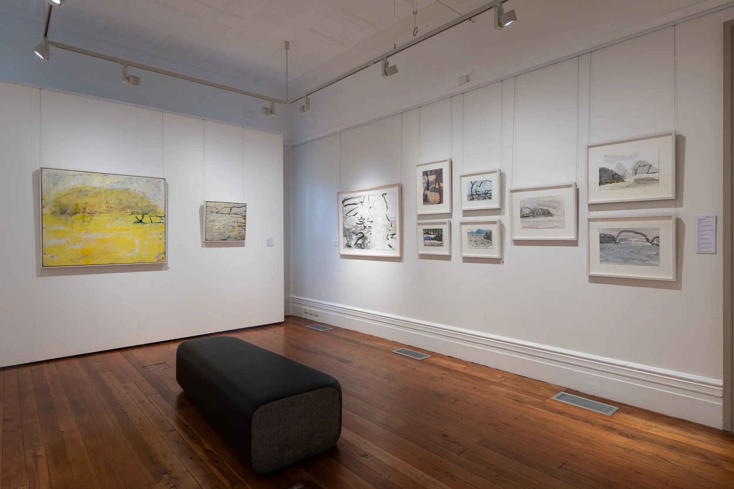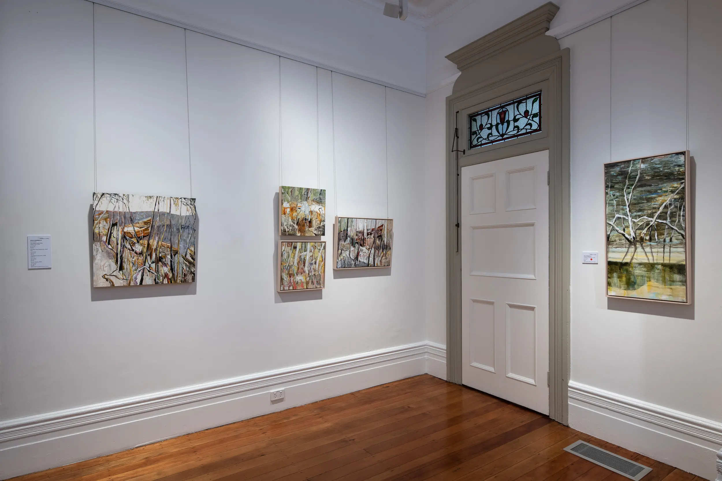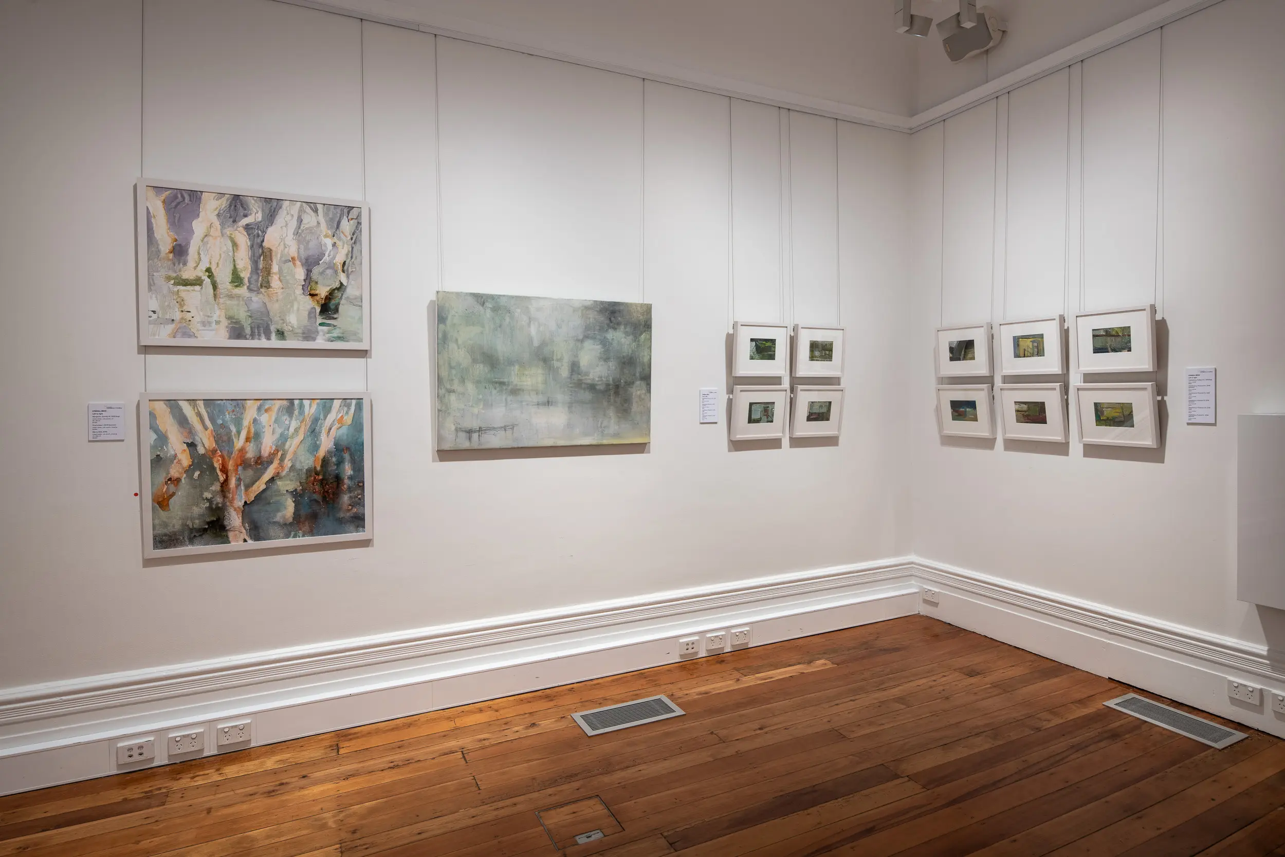 These views of the untamed, natural landscape are executed through a variety of approaches: suggestive sketches in charcoal and pastel, thin liquid washes, crusty oil, layered prints and evocative video to reveal the light and shape of the river. The exhibition is a journey through this hidden place that is The Hawkesbury.
