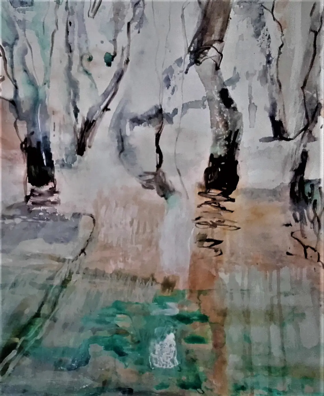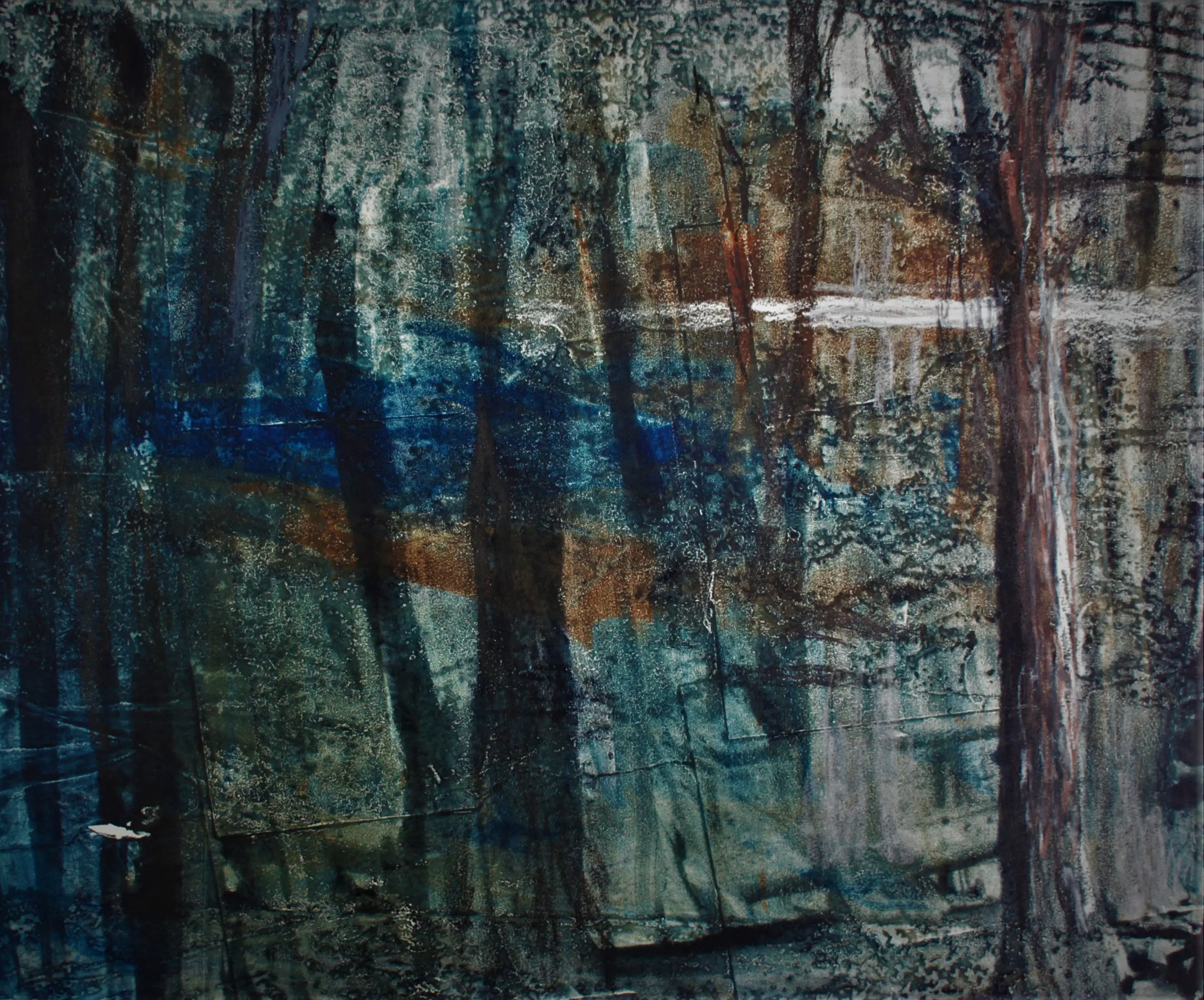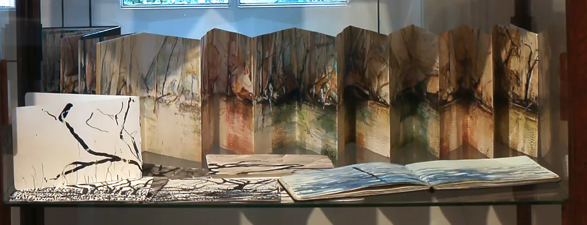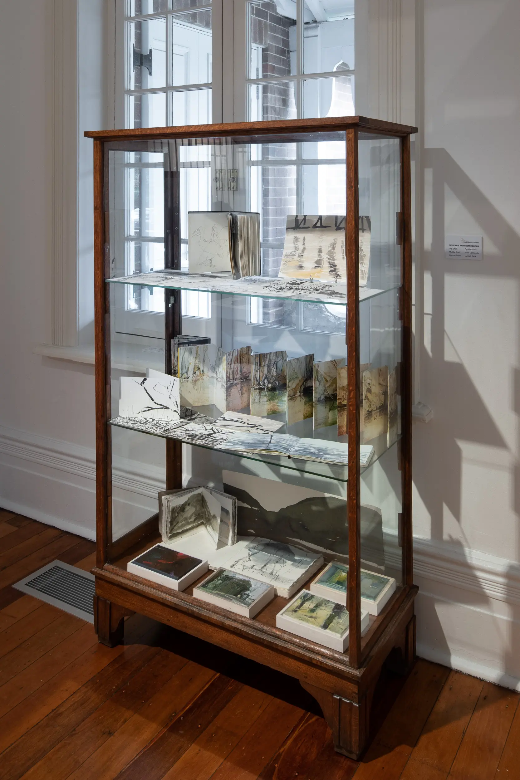 These views of the untamed, natural landscape are executed through a variety of approaches: suggestive sketches in charcoal and pastel, thin liquid washes, crusty oil, layered prints and evocative video to reveal the light and shape of the river. The exhibition is a journey through this hidden place that is The Hawkesbury.