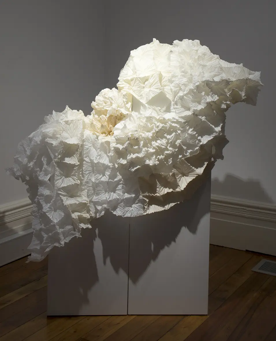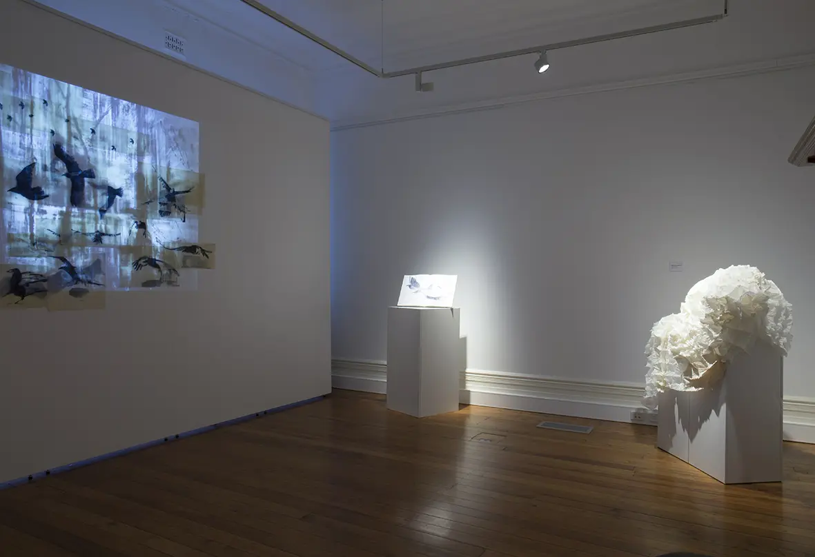 Paper is fragile and strong, absorbent and rigid, flat and bulky, pliable and solid, smooth and rough…and, vulnerable to decay. Paper has been sometimes considered second best to other art materials, consequently there is a sense of freedom for an artist to experiment without worry of preciousness. Whether as a responsive and characterful surface to interact with, or as a material to sculpt, paper responds readily to artists’ ideas and transformations. This exhibition includes work printed, sculpted, folded, pulped, projected upon and encased, and highlights the flexibility of paper as a medium.