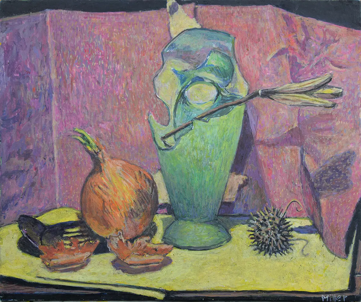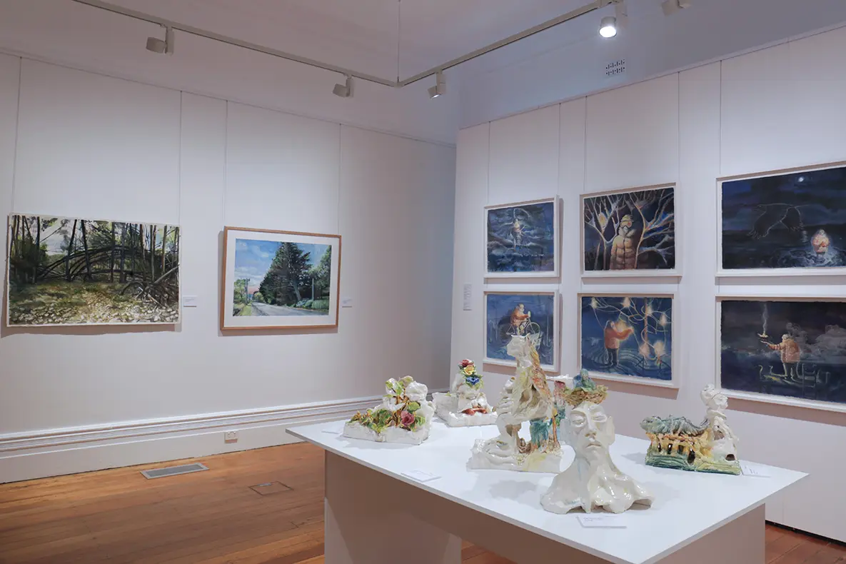 Miller was diagnosed with Parkinson’s disease over 16 years ago and has continued to focus on teaching and creating art. In Casting Light curator Nick Vickers has selected works that reveal the breadth of Paul’s practice in drawing, watercolour, ceramics and painting in egg tempera. In these works we can see his ability to move between a loose expressive approach and carefully observed details produced with the finest brushstrokes. His subject matter includes portraits of friends, the landscape of his local area and country areas he visits, still life arrangements of studio objects and evocative images of dreams and memories from his early years in Canada.