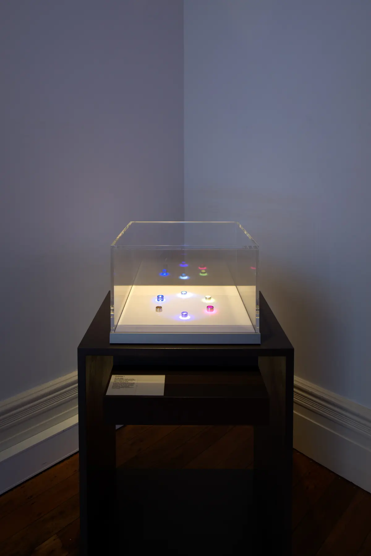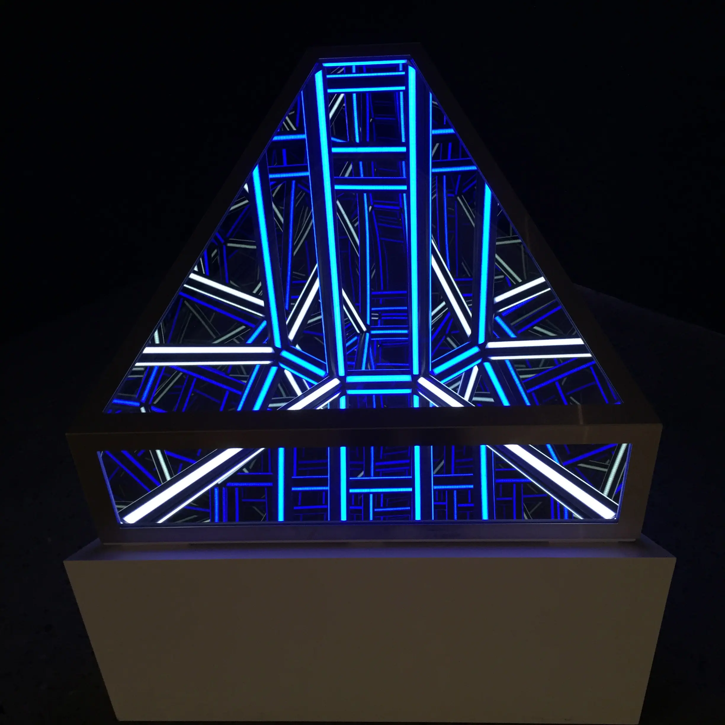 Diametric, 2015. Jason Sims is an Adelaide artist whose sculptural works inventively explore light and space. Diametric is a series of light boxes creating an immersive space and the illusion of a seemingly infinite void. These playful optical illusions draw the eye deeper and deeper blurring the space between reality and illusion. Represented by MARS Gallery, Melbourne.