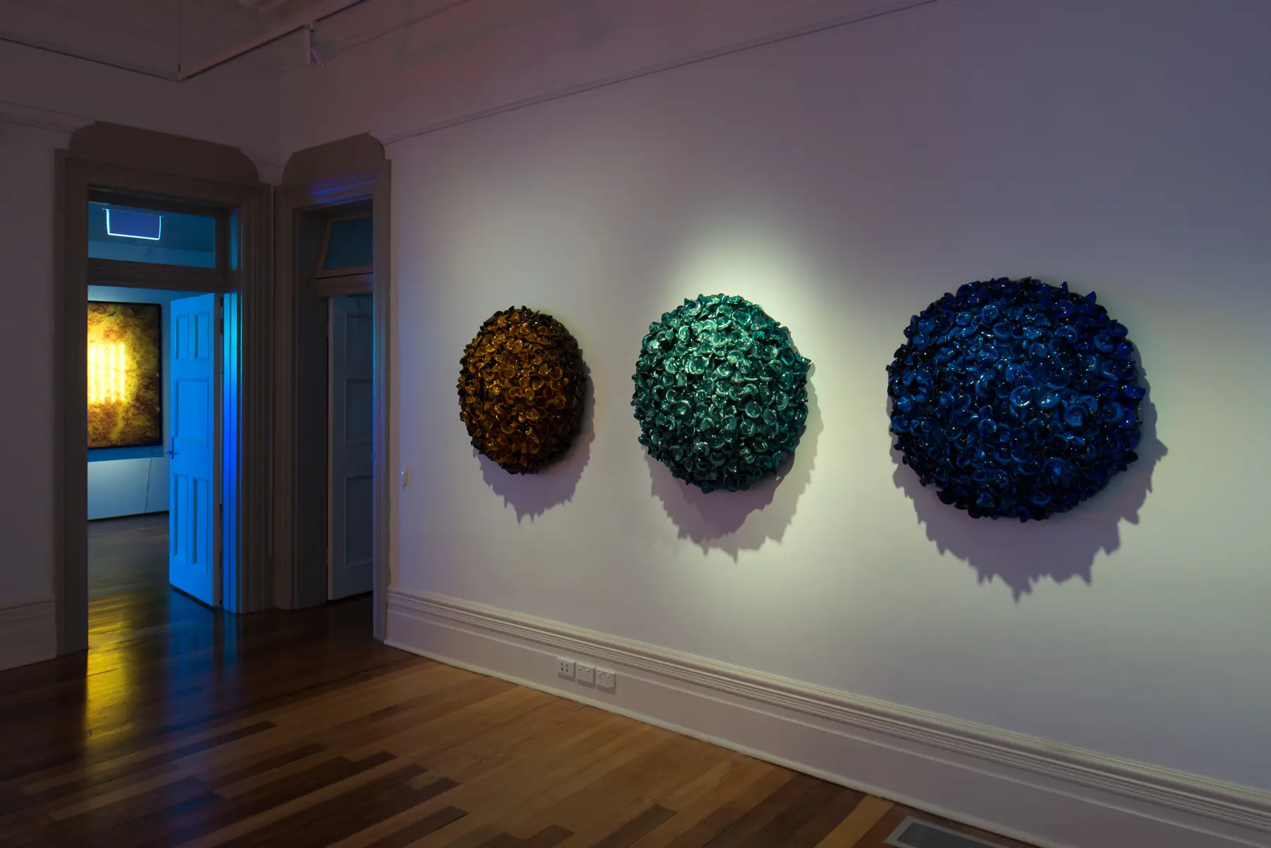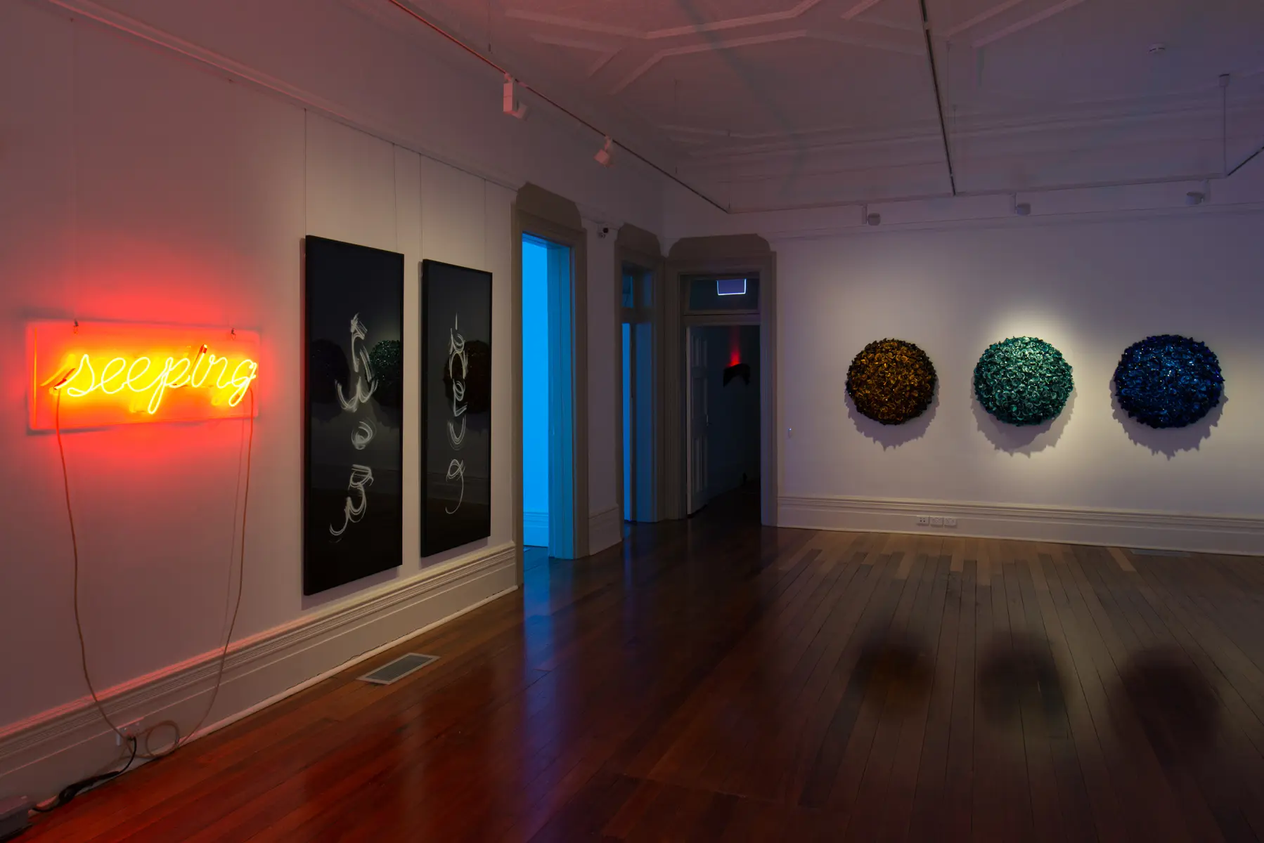 Incandescence juxtaposes artists who use a range of technical and industrial processes and devices that produce light and colour. Each artist has a personal way of using light to achieve interpretations that reflect aspects of our contemporary global culture; such as migration, the environment, economics and politics. These artists explore the endless possibilities of light, allowing artworks to create an illusion, an experience and an imaginary space.