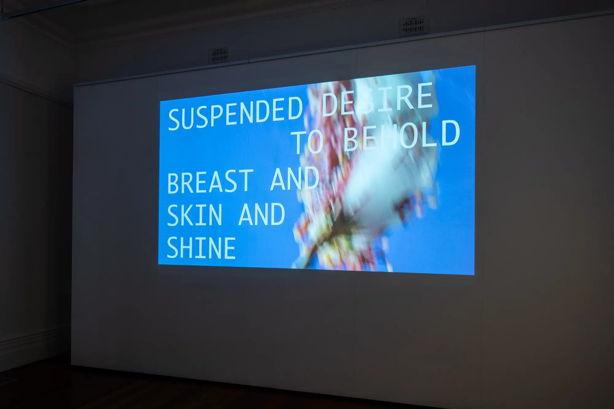 Karla Dickens Pound-for-pound #8, 2019 (detail) Aluminium, vintage mattock handle, waxed linen thread, cotton string, steel pulleys, emu feathers (image above)