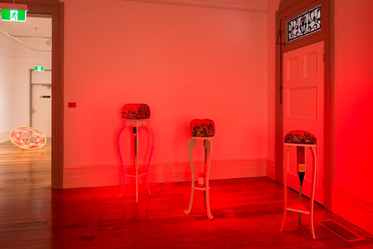 The Grace Cossington Smith Gallery announces reSATURATEryb, a group exhibition exploring the relationship between coloured objects and coloured spaces. reSATURATEryb complements and builds upon Saturate, a spatial colour installation held at Sydney College of the Arts in 2012. This time the curator, Nicholas Tsoutas, has selected the three main exhibition spaces in the gallery to each correspond to the Modernist or Bauhaus division of colour into primaries: red, yellow and blue.