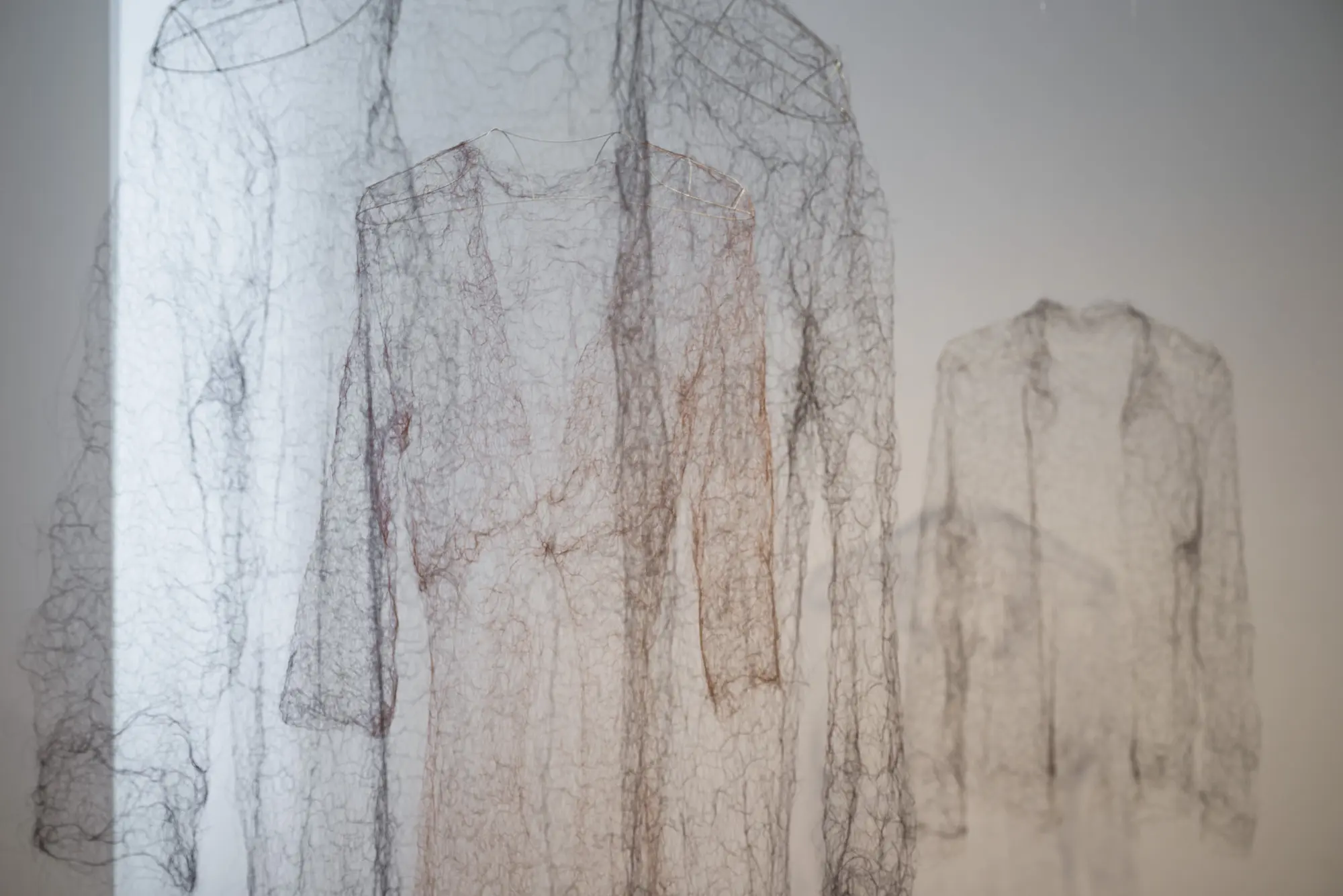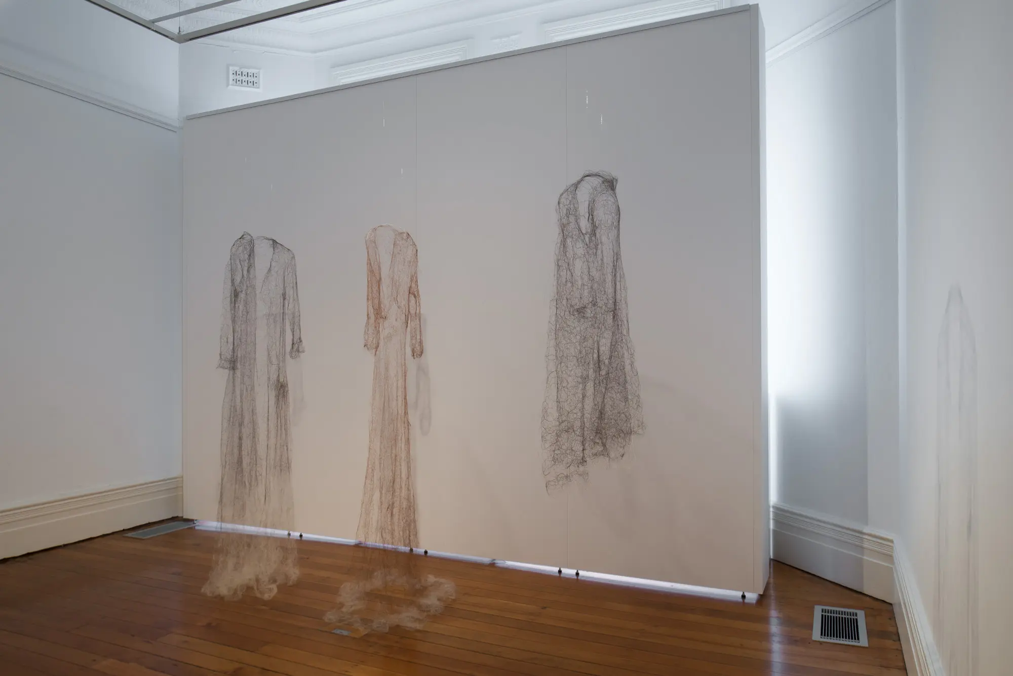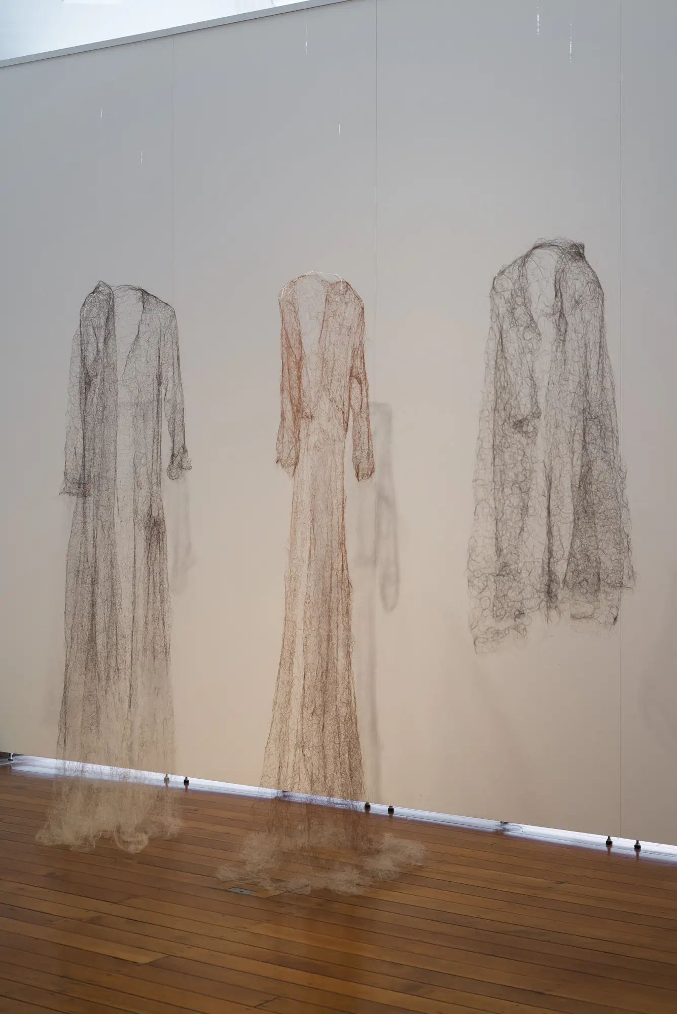 Helen Pynor has a dual background in the biological sciences and the visual arts. Her work explores the interior of the human body, evoking a sense of slippage between time, cultural memory, and the tissues of the body. Pynor has an ongoing fascination with connections between mind and body, culture and biology, body and memory. She has knitted single strands of human hair to form large and small-scale three-dimensional sculptures.
