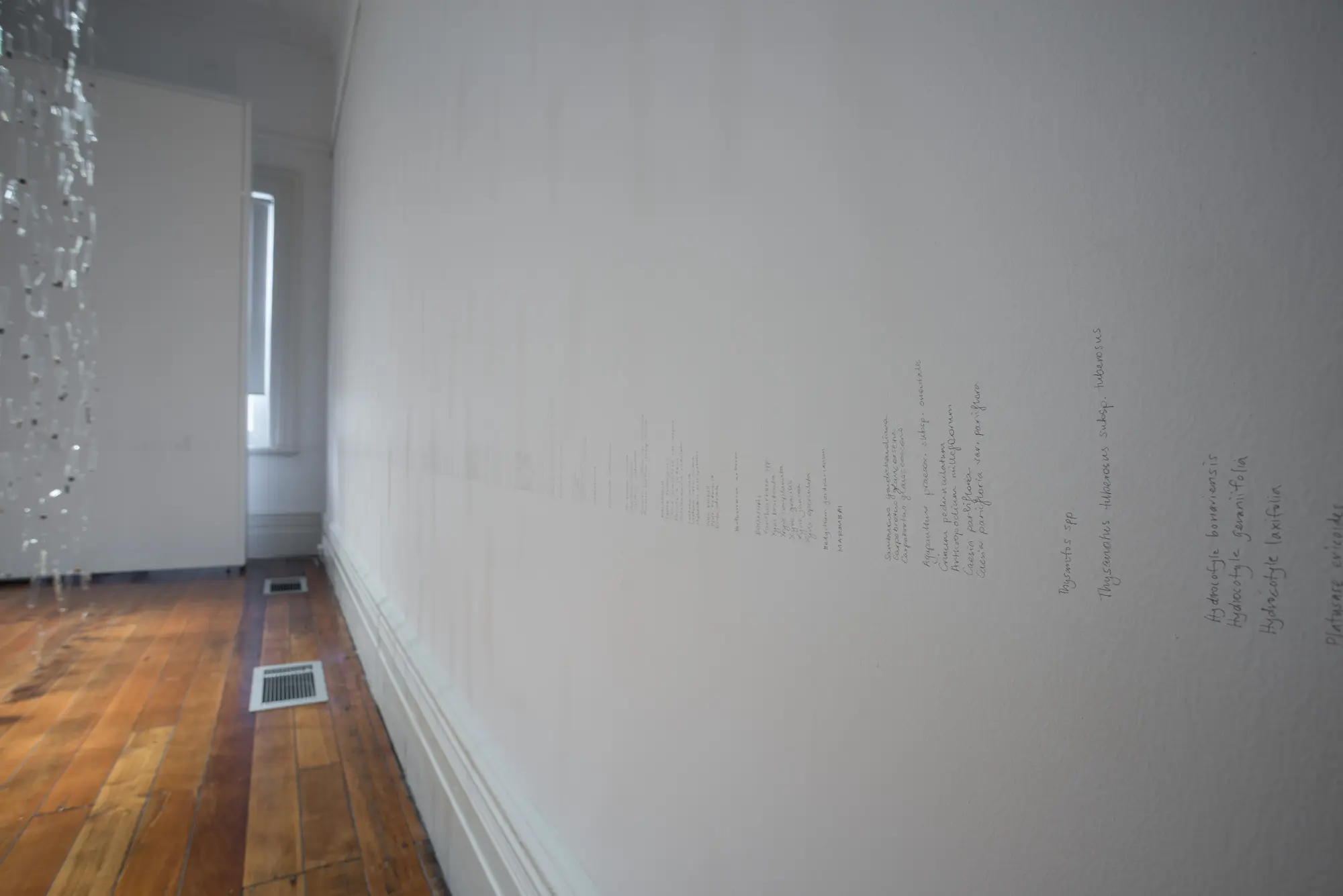 Caroline Rothwell was born in England into a family of scientists, including a father who was an industrial chemist. She responds to the impact of humanity on the planet’s climate and ecosystem, and has been interested in geo-engineering and the technologies that have been envisaged to mitigate global warming. Rothwell’s botanical drawings, of endangered plant and animal species, are drawn using the using car exhaust fume residue that is so damaging to the plants.
