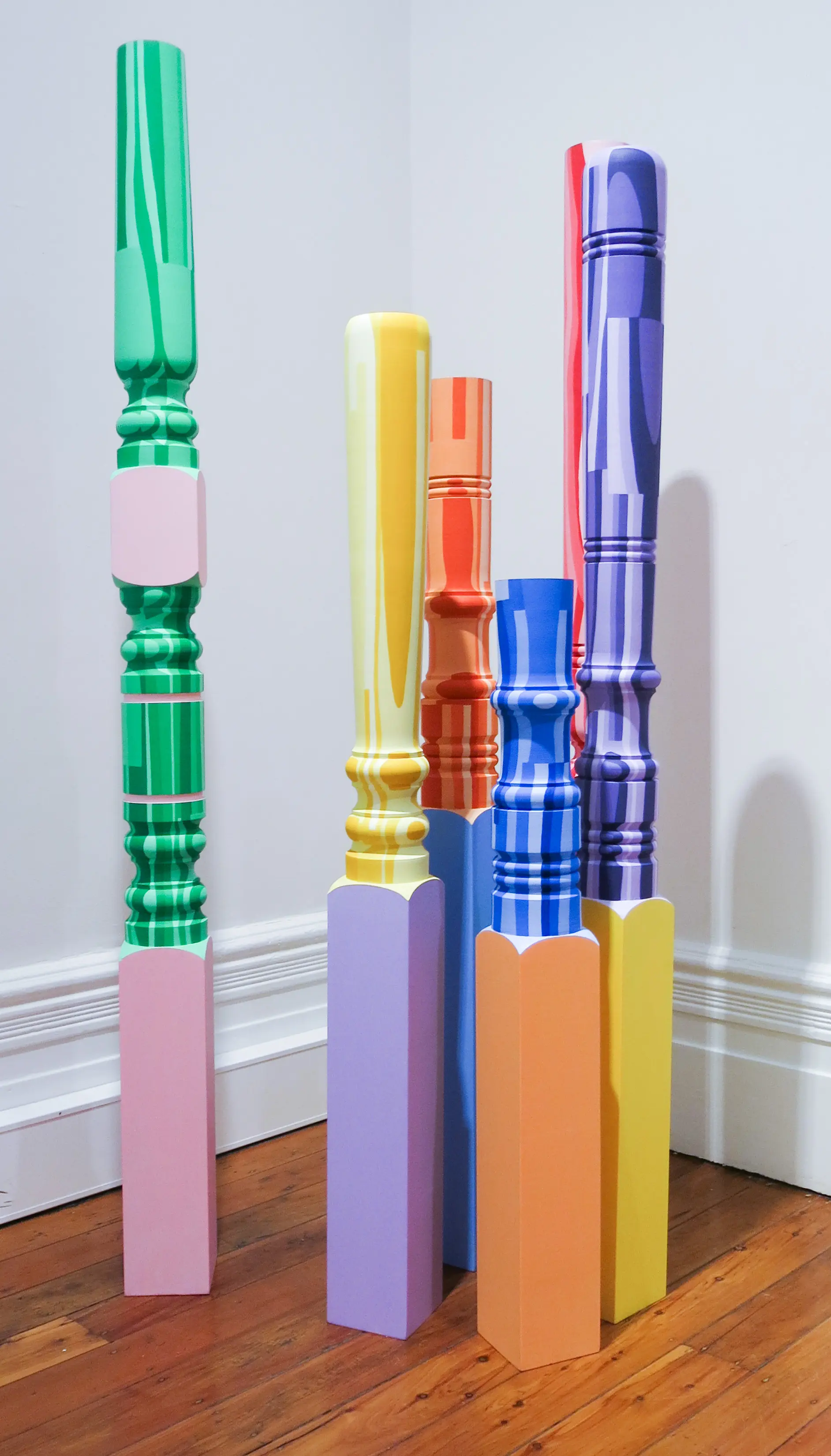 Nuha Saad’s practice explores the visceral response we have to colour. Her work takes the form of sculptural paintings (or painterly installations), as she decontextualizes familiar architectural elements and transforms them into vernacular totems of our time.