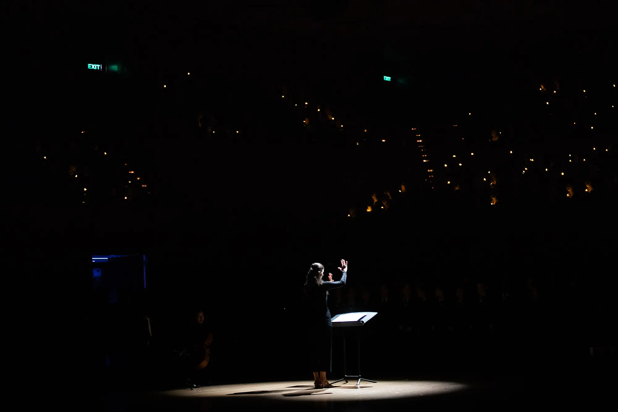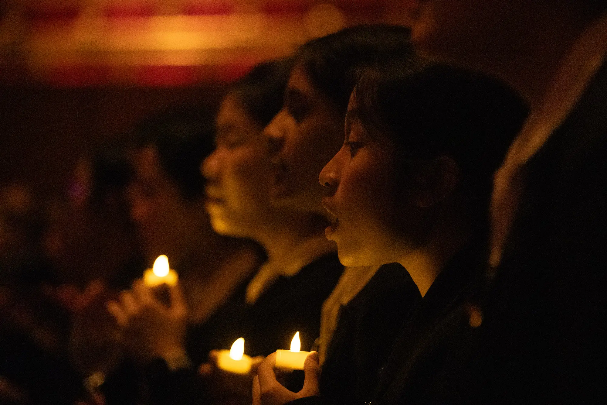 Other memorable moments included Eric Whitacre’s theatrical Godzilla Eats Las Vegas!, the jazzy warmth of Nature Boy, and Ēriks Ešenvalds’ ethereal Stars – during which the Concert Hall was illuminated entirely by tealight candles held by students, creating a soft sea of flickering light. The effect was mesmerising, further enhanced by the haunting resonance of water-tuned glasses played by choir members – an atmospheric, almost otherworldly soundscape transfixed the audience.