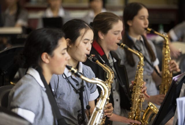 In Years 7 and 8, all girls participate in classroom Music lessons where they learn the musicianship skills to read, write and perform music. From Years 9 to Year 12, Music is offered as an elective subject.